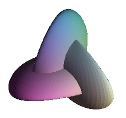 | BOY-Fläche Boy entdeckte seine Fläche 1902. Die erste analytische Darstellung wurde 1981 durch eine halbempirische Methode gegeben. Diese besteht darin, die Meridiane der Fläche durch Ellipsen zu beschreiben, welche dann parametrisiert werden. Wie die Klein Flasche besitzet sie Selbstüberschneidungen. Diese sind eine Folge der Einbettung der Fläche in den dreidimensionalen Raum.